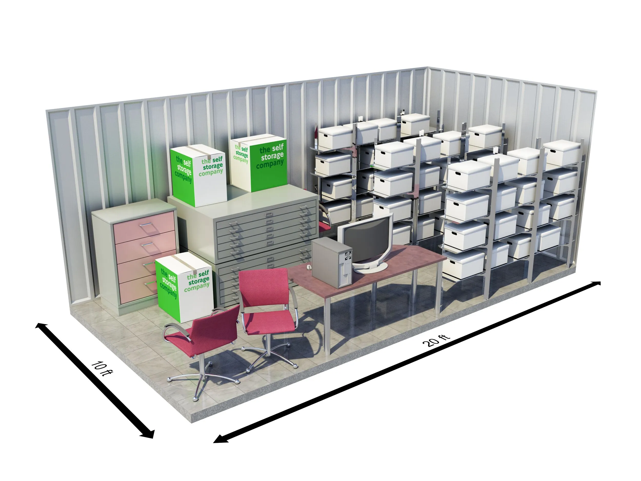 Our 175 sqft self-storage units at The Self Storage Company can fit up to 280 boxes or the equivalent contents of a 4-bedroom house. This storage unit size is ideal for customers who live abroad and require a clean, dry and secure space for their household items and furniture while away.